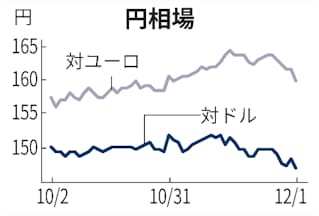 米サプライマネジメント協会(ISM)が発表した11月の製造業景況感指数は市場予想を下回り、米経済には減速の兆候が強まっている。今週発表の11月の米雇用統計は「下振れによるドル安・円高リスクへの警戒が強い」(三菱UFJモルガン・スタンレー証券の植野大作チーフ為替ストラテジスト)との声がある。