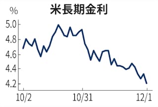 12〜13日の米連邦公開市場委員会(FOMC)を前に高官の政策関連の発言はなくなり、材料は経済統計に移る。11月米雇用統計では「急ピッチの金利低下に警戒感が残る」(三井住友トラスト・アセットマネジメントの稲留克俊シニアストラテジスト)ため、一段の金利低下には大幅な下振れが条件となりそうだ。