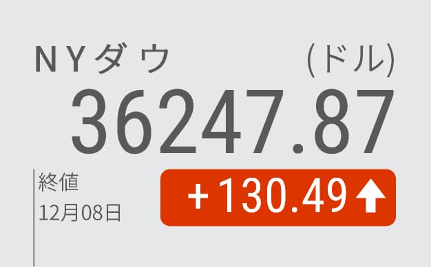 【NQNニューヨーク=矢内純一】8日の米株式市場でダウ工業株30種平均は続伸した。前日比130ドル49セント(0.36%)高の3万6247ドル87セントと1週間ぶりに年初来高値を更新した。2022年1月以来およそ1年11カ月ぶりの高値。朝発表の11月の米雇用統計は総じて強い内容だったが、米連邦準備理事会(FRB)が一段と金融引き締めをするほどではないと受け止められた。米景気悪化への懸念も和らぎ、主力株の一部に買いが入った。