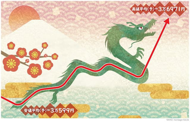 日経平均は23年、卯(う)年の相場格言「跳ねる」の通り高値をつけた。戦後6回あった辰(たつ)年の日経平均の年間騰落率は28%上昇と十二支のなかで断トツだ。24年は「昇り竜」がごとく上昇気流相場を実現できるのか展望する。